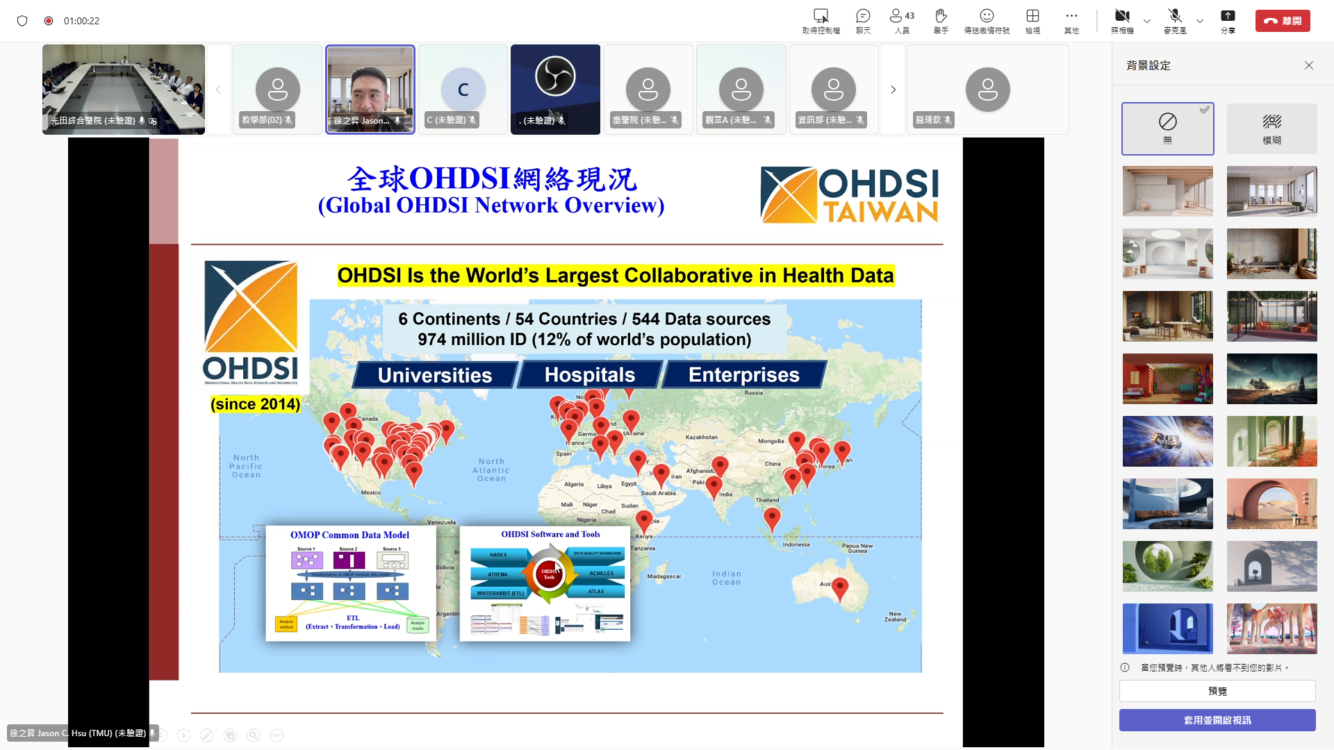 The online event attracted strong participation from healthcare professionals and featured active discussions, reflecting the growing interest in data-driven approaches in clinical practice and research. This engagement further strengthened the connection between OHDSI Taiwan and healthcare institutions, laying a solid foundation for future cross-institutional and international collaborations.